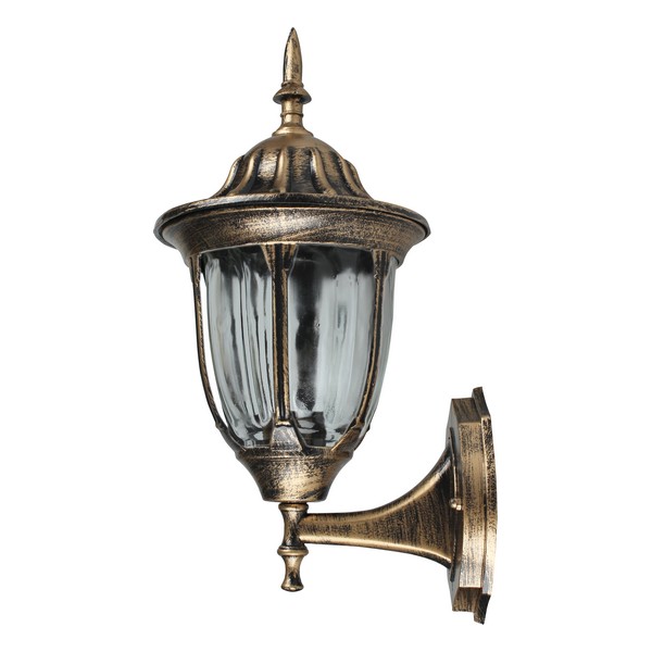 Zidni fenjer Forma S4150 GB je lampa jednostavnog i elegantnog dizajna u crno zlatnoj boji.Izrađen je od metala i stakla.Lampa je opremljena jednim sijaličnim grlom tipa E27. Odlično je rešenje za osvetljavanje ulaza u zgradu ili kuću, osvetljavanje fasade i sličnog. Njegova svrha je kako da osvetli prostor spolja, tako i da stvori posebno prijatnu atmosferu na vašoj terasi, balkonu i ostalim spoljnim zidovima.Model je kvalitetne izrade, otporan na koroziju i UV zrake.Poseduje stepen zaštite IP54, pa je vodotporan i otporan na prašinu.Lampa je dimenzija 350xØ170mm