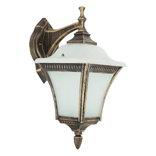 Zidni fenjer Forma S4156 GB je lampa elegantnog, rustičnog dizajna u boji bronze. Izrađena je od metala i stakla mlečno bele boje.Lampa je opremljena jednim sijaličnim grlom tipa E27. Odlično je rešenje za osvetljavanje ulaza u zgradu ili kuću, osvetljavanje fasade i sličnog. Njegova svrha je kako da osvetli prostor spolja, tako i da stvori posebno prijatnu atmosferu na vašoj terasi, balkonu i ostalim spoljnim zidovima.Model je kvalitetne izrade, otporan na koroziju i UV zrake. Poseduje stepen zaštite IP54, pa je vodotporan i otporan na prašinu.Lampa je dimenzija 185x330mm