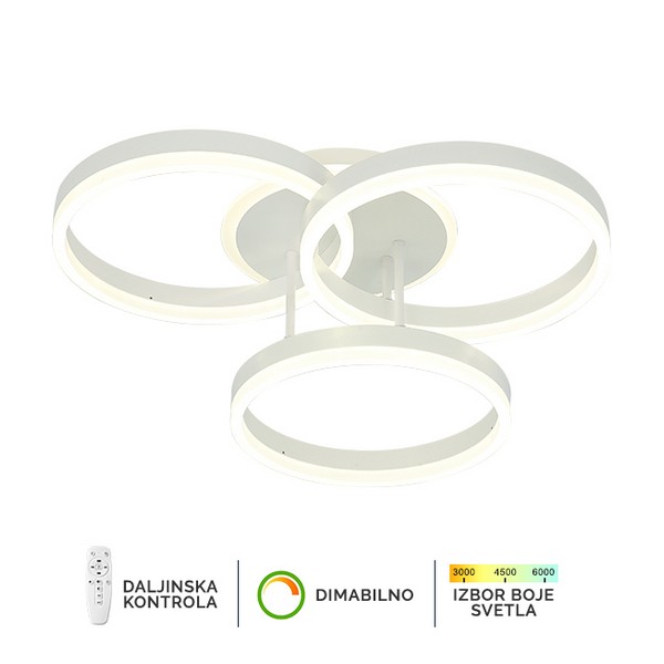 LED plafonska lampa Forma F2047-82C WH koja dolazi u beloj boji, doprinosi modernom izgledu vaših prostorija. Jačina od 82W sa integrisanim LED svetlom omogućiće vam dugotrajno i elegantno osvetljenje.Takođe poseduje daljinski upravljač za odabir boje svetla u rasponu od 3000K do 6400K kao i dimovaje,sto omogućava da podesite jačinu svetla vašim potrebama.Zbog svojih dimenzija od Ø3x300mm ova lampa je idealna za osvetljenje trpezarije, spavaće ili dnevne sobe.