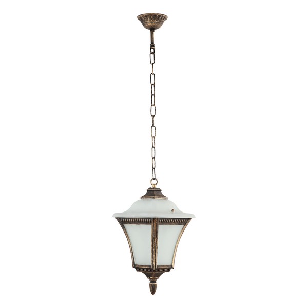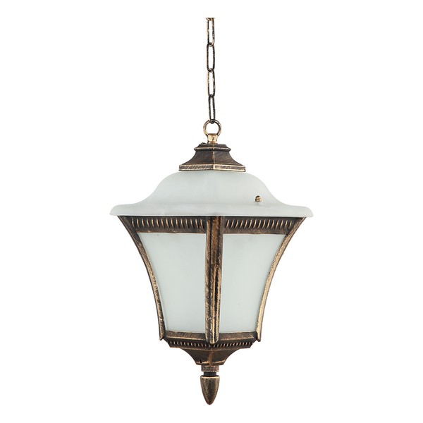 Viseći fenjer Forma S4157 GB je visilica rustičnog dizajna. Viseći fenjer je simbol elegancije i praktičnosti za vaš spoljni prostor.Ova prefinjena lampa kombinuje stil i funkcionalnost kako bi vaš eksterijer dobio poseban sjaj. Izrađen je od metala(u boji zlata) i stakla bele boje sa jednim sijaličnim grlom tipa E27.Zbog svojih dimenzija od 185x1200mm odličan je izbor za dekoraciju terasa i balkona, kao i za restorane ili druge ugostiteljske objekte, koji žele da unesu dozu romantike u svoj prostor.